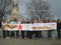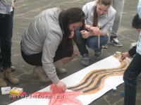 «Такую акцию в честь 9 мая мы проводили впервые, - рассказала одна из организаторов акции, руководитель вологодской городской молодежной общественной организации «Российский союз молодежи» Татьяна Попова. – За день до флеш-моба мы обзвонили около 20 школ – решили позвать как можно больше ребят, но откликнулись, к сожалению, не все, а только одна школа. Погода нас сегодня подвела!».