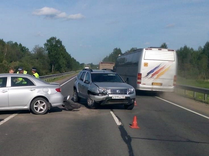 По предварительным данным 39-летний мужчина, управляя машиной Mazda, при обгоне столкнулся с Toyota Corolla, под управлением 58-летнего водителя. От удара Toyota отбросило на Renault Duster, за рулем которого находился 45-летний мужчина, сообщает ИА «СеверИнформ» со ссылкой на пресс-службу УМВД России по Вологодской области.