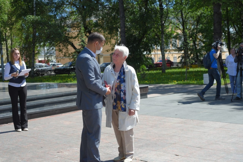 Удостоверения госнаград получили не сами бойцы Великой Отечественной. Их родным на пл. Революции у Вечного огня вручил мэр Вологды.