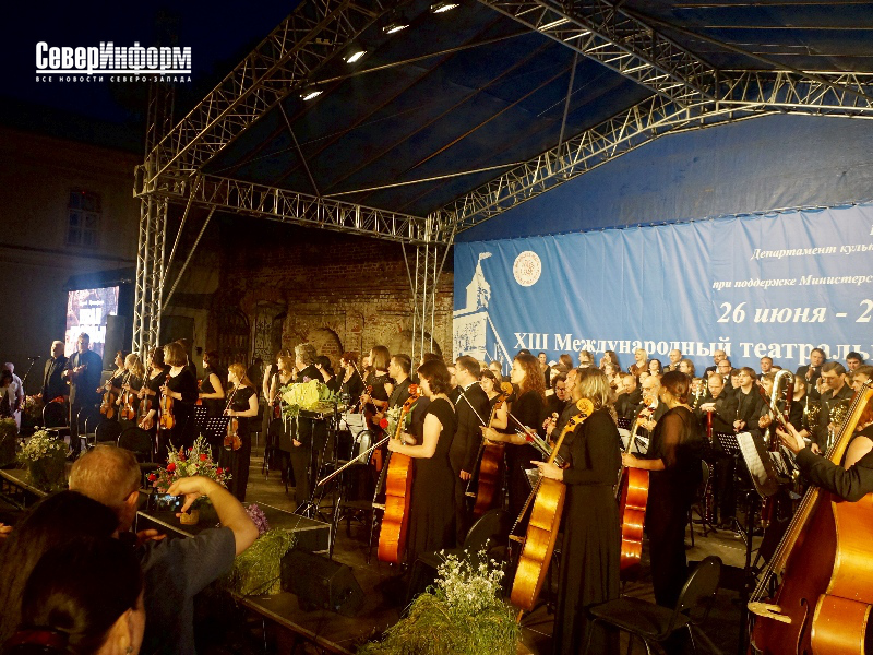 После завершения церемонии закрытия театрального фестиваля на сцене в Консисторском дворе Кремля появились музыканты Карельского симфонического оркестра, мужской камерный хор Вологодской филармонии и хор Мариинского театра.