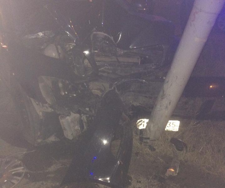 Легковой автомобиль вылетел с трассы и врезался в световую опору