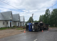 На улице поселка в Бабаевском районе опрокинулся большегруз