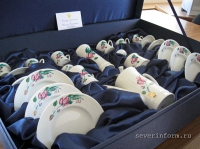 «Это кофейный сервиз на 6 персон известного нашего Ломоносовского фарфорового завода. Это подарок от Президента Российской Федерации Дмитрия Анатольевича Медведева и его супруги Светланы Владимировны Медведевой двум молодым людям, которые хотят зарегистрировать свой брак 5 августа этого года в Тотьме», – рассказала корреспонденту агентства советник главного федерального инспектора в Вологодской области Евгения Панцырева.