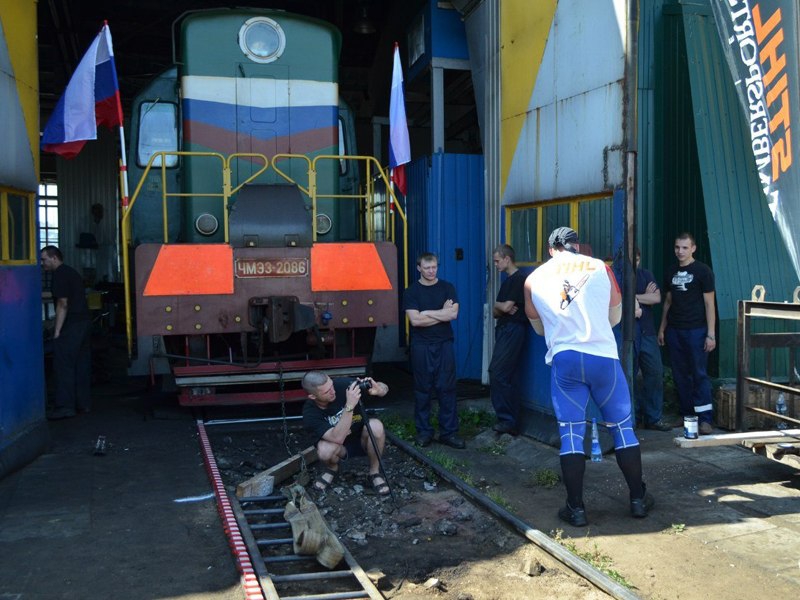 Вологодский силач протащил многотонный тепловоз на 4 метра