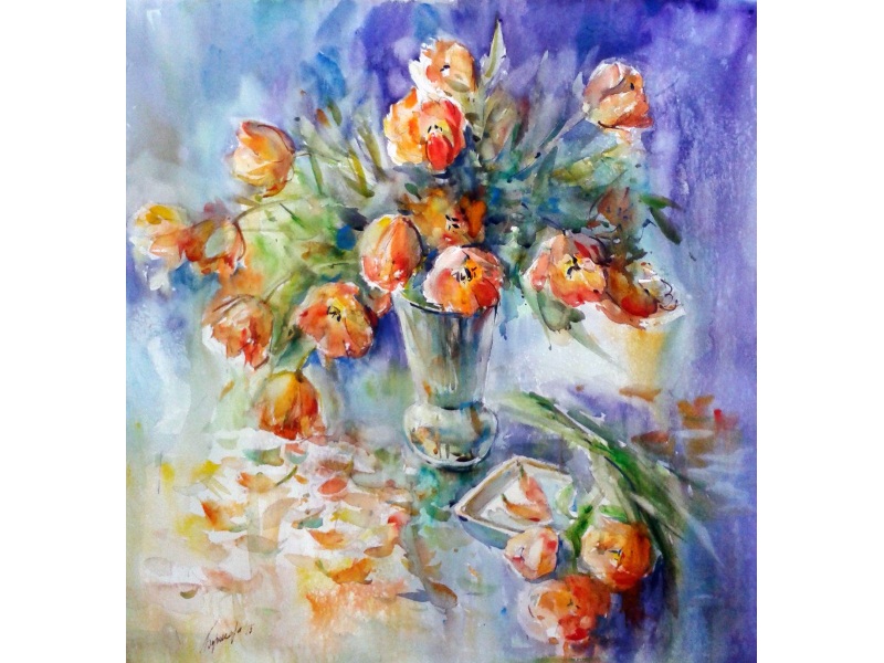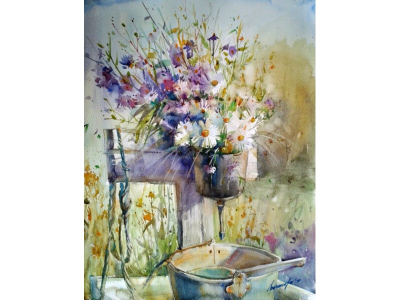 8 августа там же пройдет демонстрационный мастер-класс по акварели «Полевые ромашки» с участием автора работ