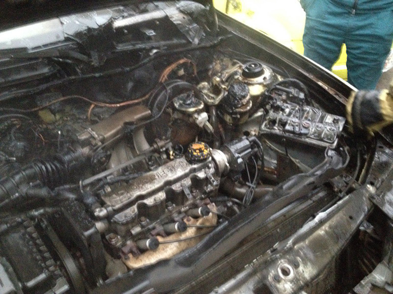 Огонь повредил переднюю часть автомобиля и моторный отсек