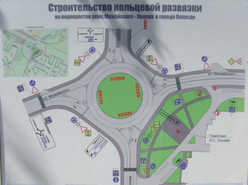 Кольцевое движение вводится на перекрестке Конева — Окружное шоссе. Это выезд на трассу М 8, идущую в сторону Москвы. Сейчас на данном участке ограничен скоростной режим и снесены уличные фонари. Сейчас переносятся коммуникации, мешающие будущей дороге. По проекту, диаметр кольца – 60 метров, общая длина участка -700 метров.