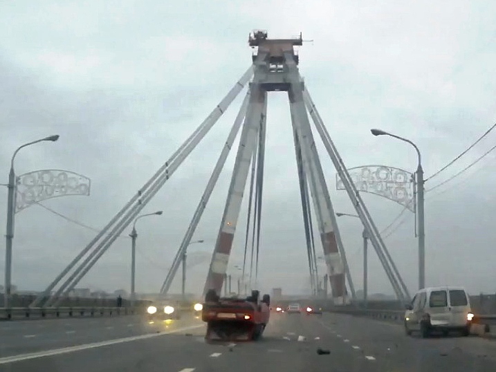 Автомобиль перевернулся на крышу в результате ДТП на мосту в Череповце (ВИДЕО)
