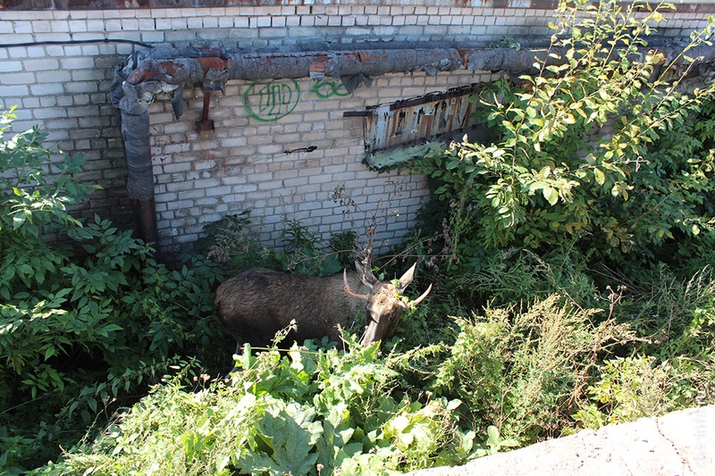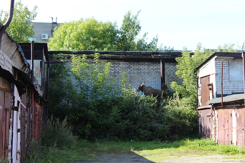 Мечущегося по городу лося видели в районе проспекта Строителей, потом на улице Комсомольской. Буквально - загнать в угол зверя полицейские смогли в гаражном кооперативе. В ожидании охотоведа, его заблокировали машинами.