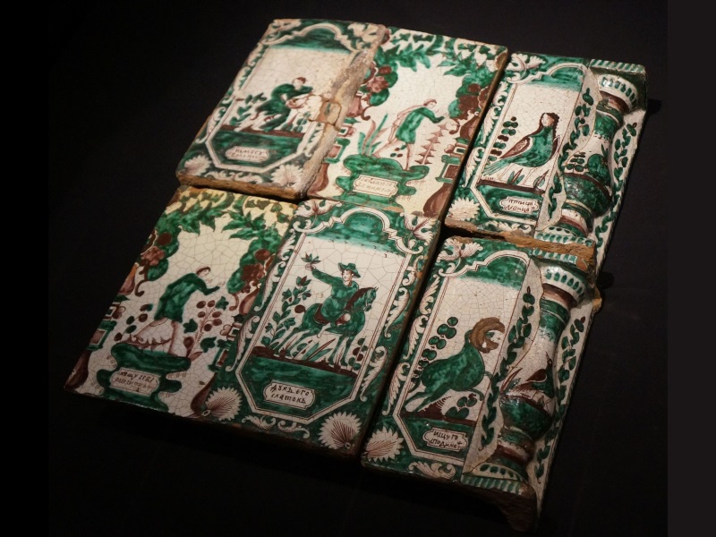В коллекции музея также есть ряд изразцов петровского времени. Изображения на них взяты из сборника «Символы и эмблематы». Ео напечатали по указу Петра I в 1705 году в Амстердаме. Книга долгое время являлась источником иллюстраций на кафельных плитках для изразечников по всей стране.
