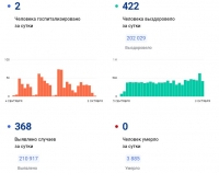 Накануне диагноз подтвердился у 392 вологжан. Сегодня сайт стопкоронавирус.рф опубликовал данные о 368 заразившихся. Выздоровели 422 пациента, всего их с начала пандемии — более 200 тысяч.