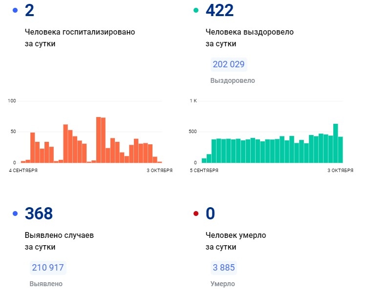 Двое суток подряд число новых случае не превышает 400. Хотя а протяжении последних двух недель показатели были больше.