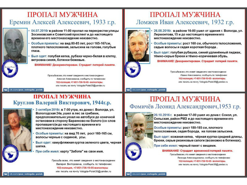 В Вологодской области до сих пор разыскивают четырёх пенсионеров