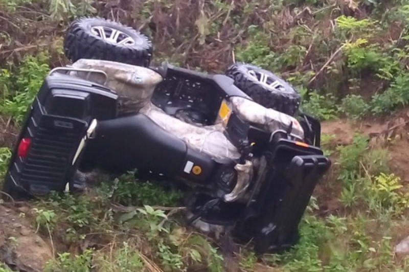Квадроцикл занесло, и он опрокинулся.