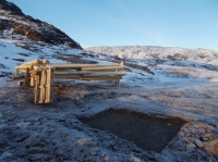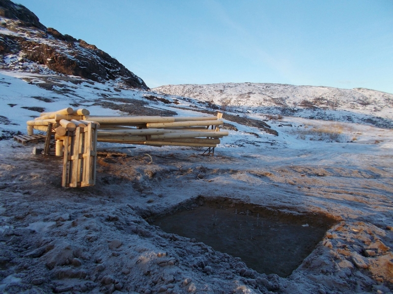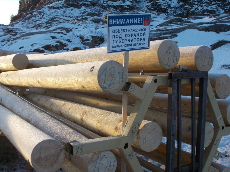 В знаменитом туристическом поселке Териберка завершается установка въездного знака из брёвен, изготовленного студией Лебедева, которая разрабатывает дизайн-код для Териберки.