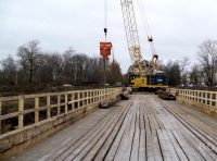 На двух опорах сооружения полностью выполнены работы по устройству свайного основания, еще на двух процесс продолжается. На данный момент в грунт погружено 172 железобетонные сваи из необходимых 346. Рабочие также завершили обустройство временного моста. Он необходим для проезда техники, с него будут вестись работы по устройству опоры, которая располагается непосредственно в русле реки.
