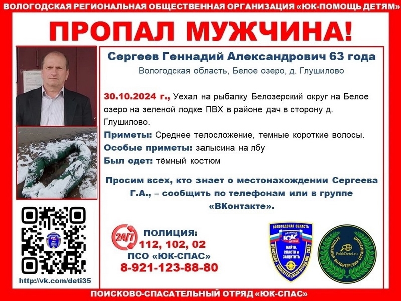 Геннадий Сергеев ушел на лодке на Белое озеро 30 октября.