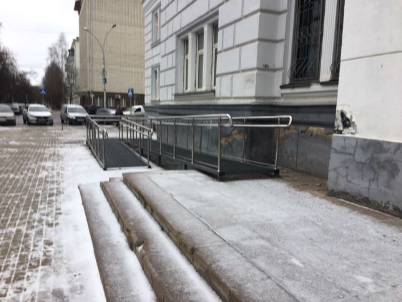 "Замороженное" крыльцо с недоделанным пандусом стало лицом картинной галереи