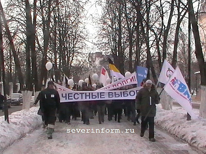 Сбор участников был организован у стадиона «Динамо». Когда немногочисленные представители политических партий развернули знамена и плакаты, колонна двинулась в сторону площади Революции, где прошел митинг. Выступавшие требовали отставки председателя ЦИК Владимира Чурова и Премьер-министра страны Владимира Путина, которого оппозиционеры назвали причиной всех бед современной России.