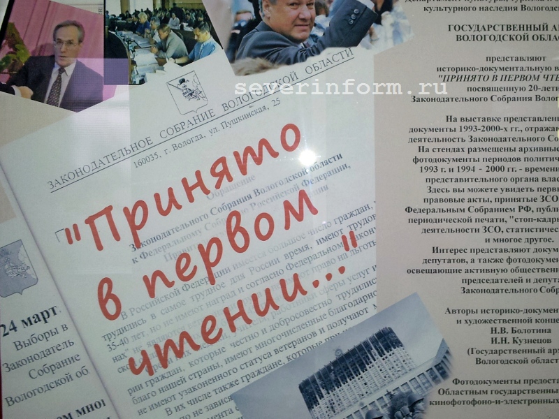 Историко-документальная выставка «Принято в первом чтении» открылась в Законодательном Собрании Вологодской области. Церемония торжественного открытия прошла во вторник, 4-го февраля.