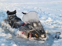 Снегоход с рыбаками пришлось вытаскивать спасателям на Рыбинском водохранилище