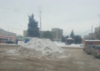 Огромный сугроб встречает гостей города на площади Бабушкина.