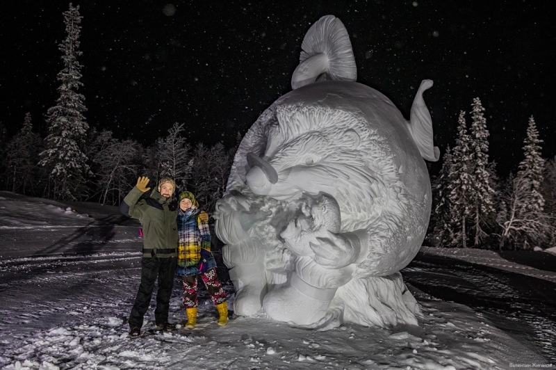 В течение недели скульпторы работали на глазах посетителей центра, которые специально приходили наблюдать за созданием снежных шедевров, сообщает ИА «СеверИнформ».