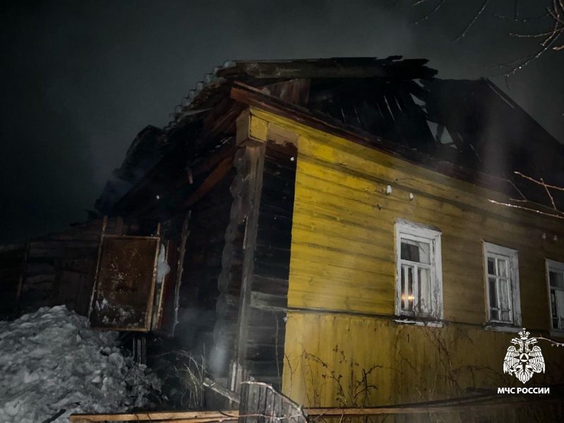 Огонь уничтожил кровлю дома, повредил внутреннюю отделку стен и потолка. В ходе тушения пожарными были обнаружены тела двух мужчин. Предположительно, 37-летнего хозяина дома и его 52-летнего товарища.