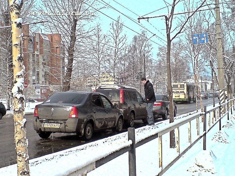 Чуть позднее на улице Октябрьской неподалеку от ее пересечения с Авксентьевского «выстроились в ряд» 3 иномарки - «Toyota», «Nissan» и «Renault». Все автомобили двигались в сторону улицы Ленинградской.