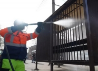 В Вологде начали мыть павильоны для ожидания транспорта и леерные ограждения.