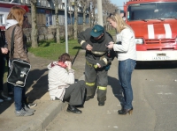 Пожарные оказали психологическую помощь пострадавшей и наложили ей повязку на рану
