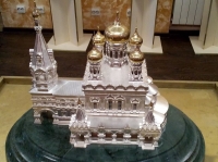 Макет Храма — настоящий шедевр современного искусства, являющийся точной копией Храма Рождества Христова на Шипке. Уникальное произведение выполнено по проверенным «дедовским» технологиям – вручную. Все элементы, даже микродетали безупречно спаяны между собой – сделано 30 тысяч паек серебряным припоем без прожогов и наплывов.