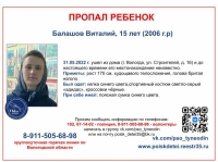 По данным волонтеров ПСО, 15-летний Виталий Балашов 31 мая этого года вышел из дома №16 на улице Строителей, с тех пор о нем ничего не известно.