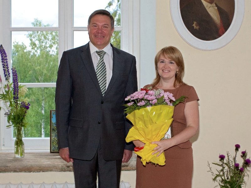 Олег Кувшинников наградил Наталию Петрову за вклад в реализацию молодежной политики
