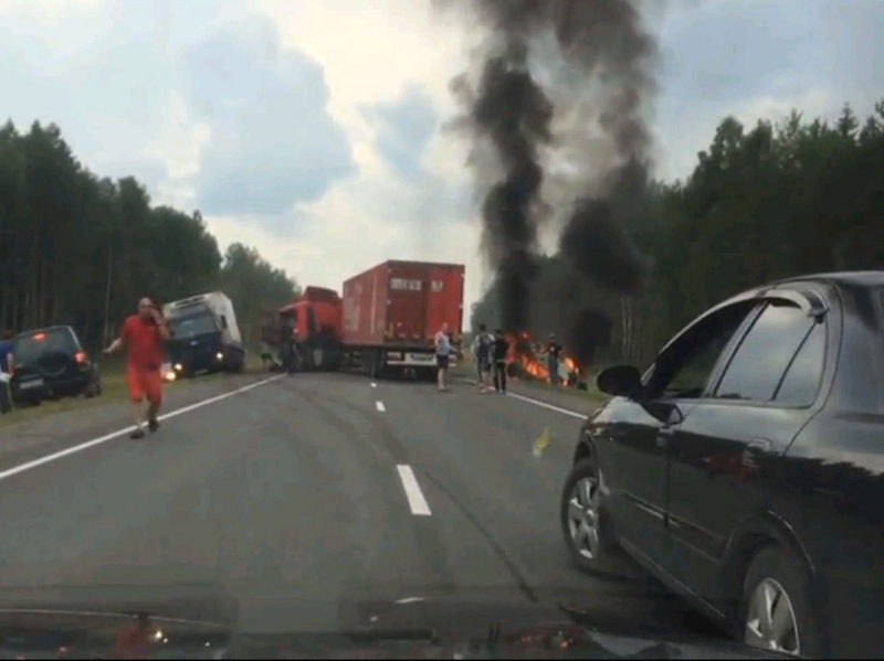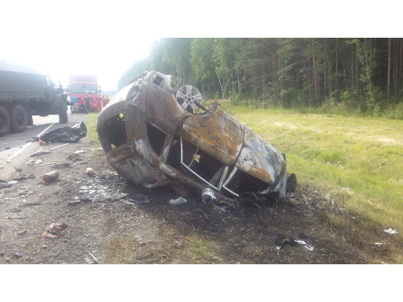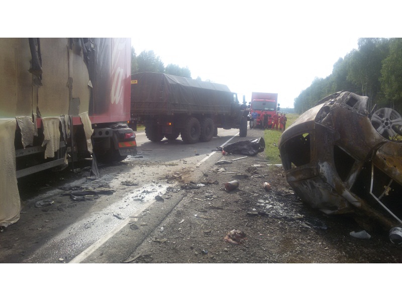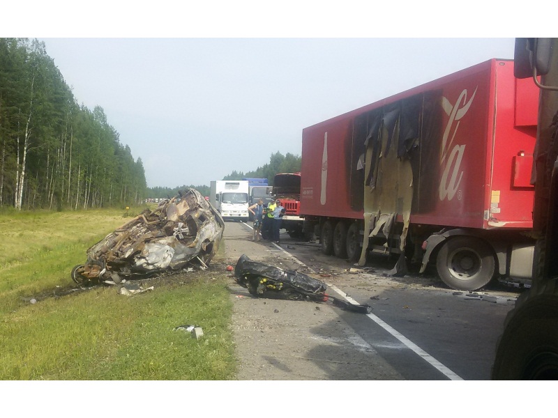 Два человека сгорели при ДТП в Череповецком районе. Авария произошла в понедельник, 4 июля. По предварительным данным около 15 часов на 190 километре трассы «Вологда-Новая Ладога» тягач с прицепом столкнулся с легковым автомобилем. В результате столкновения фура полностью перекрыла дорогу. Легковушка вылетела на обочину и загорелась.
