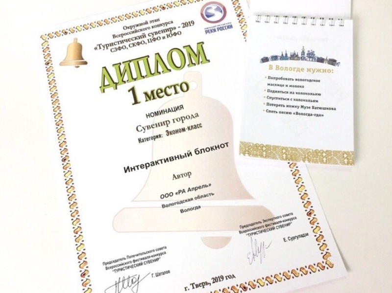 Рекламное агентство «Апрель» стали участниками этого мероприятия и представили на суд жюри авторские сувениры с использованием вологодского стилистического узора. Интерактивный «ВОлОгОдский блОкнОт» особенно понравился экспертам и стал победителем окружного финала в номинации «Сувенир города» ценовой категории «Эконом-класс».