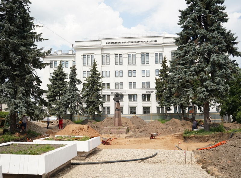 «В проект были внесены изменения в виде подсветки памятника. Считаю это очень важным моментом, потому что памятники должны выделяться в парках и скверах. Думаю, вологжанам такое решение понравится. Также мы решили убрать все воздушные линии в землю, заменить бетонную брусчатку на гранит и высадить шестиметровые голубые ели взамен старых. Работы идут по графику. Сейчас завершают устройство инженерных коммуникаций. Идет подготовка основания, завозятся материалы. К 1 сентября сквер будет готов», – сказал исполняющий обязанности мэра города Вологды Андрей Накрошаев.