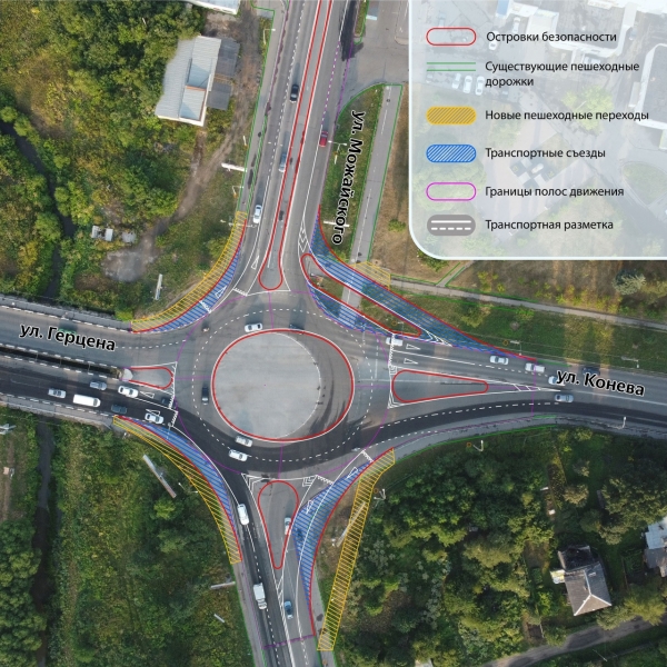 За счет расширения проезжей части на кольце появятся отдельные полосы для поворота направо: с Можайского на улицу Конева, с Конева на Можайского, уточнили в администрации. Теперь машинам, которые захотят совершить правый поворот, не нужно будет заезжать на кольцо. Будет расширена и территория у моста через Шограш, сообщает ИА "СеверИнформ".