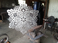 стали. Изделие диаметром около метра весит 20 килограммов. Поделку создали участники творческого объединения «Кузница 35» - Руслан Воробьев и Александр Чернов. Воплотить идею в жизнь удалось при содействии единственного в России Музея кружева и меценатов Александра Мартиросян-Гарамова и Валерия Груздева.