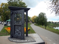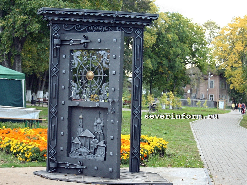 На набережной реки Вологды установили новый арт-объект «Дверь в...». Она появилась на перекрестке улиц Ленинградской и Маяковского. Металлическая «Дверь в...» украшена золотыми рыбками. На ней есть солнце, вологодский кремль с куполами Софийского собора, колокольня и элементы резьбы с деревянных домов. Памятник установлен на основании в виде карты города.