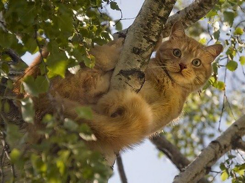 МЧС, по словам хозяев, снимать животное с дерева отказалась.