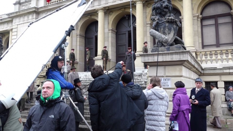 У стен бывшей кенигсбергской биржи, где в последние дни работала съемочная группа, перекрыли движение для современного транспорта, здесь курсируют только ретро-автомобили: «Мерседесы» и «Студебеккеры».