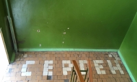 На полу одной из площадок плиткой выложено это имя. Находку обнаружили во время ремонта лестничного пролета в областной больнице №4 в Череповце.