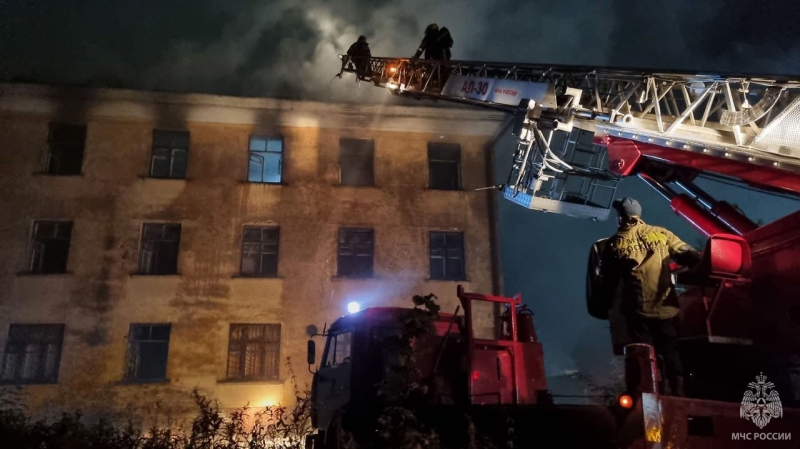 Очаг возгорания находился на третьем этаже в помещениях левого крыла. На месте работали 19 человек и 6 единиц техники. Выяснилось, что огонь по вентиляции распространяется на чердак. Площадь пожара составила 100 квадратных метров.