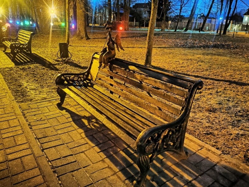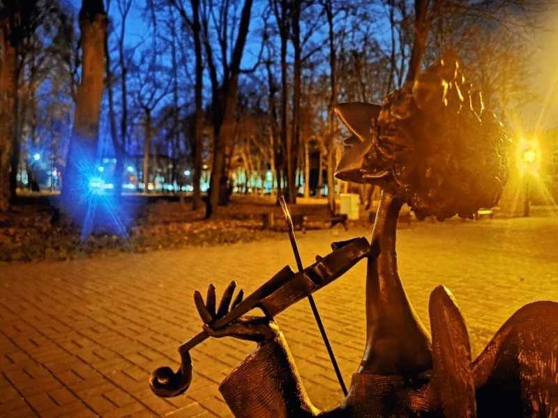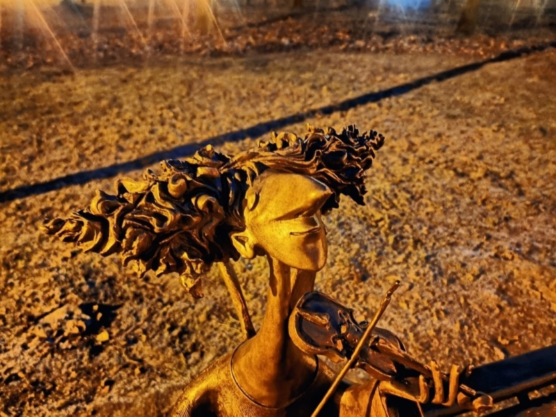 Фигурка со скрипкой создана по эскизу художника-кукольника Романа Шустрова. Его авторству принадлежат, в том числе, Питерские Ангелы, уже ставшие своеобразными талисманами северной столицы. Горожане и туристы охотно фотографируются рядом со скульптурами, наряжают их в вязаные шарфики. Мастер скончался в разгар пандемии коронавируса, но его творчество продолжает жить.