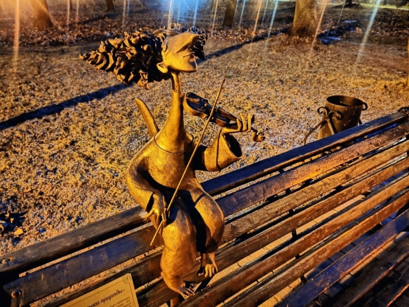 В Соляном саду на одной из скамеек притаился необыкновенный персонаж. Это «Ангел музыки природы». Бронзовая фигурка выполнена настолько реалистично, что кажется, будто вот-вот маленькие пальчики забегают по струнам.