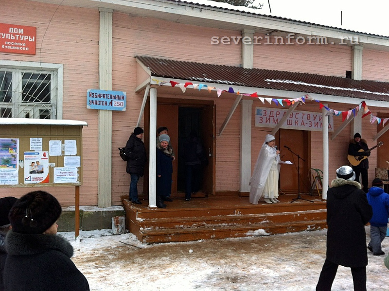 У избирательного участка, расположенного в Кувшинове (Вологда) в эти минуты проходят народные гуляния. Как сообщили ИА "СеверИнформ - Новости Вологды" очевидцы, праздник "Здравствуй, зимушка-зима!" уже собрал приличное количество участников и зрителей. Здесь играет гармонь, пляшут люди и демонстрируются номера художественной самодеятельности. Кроме того, здесь можно покататься в настоящих санях.