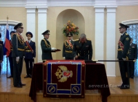 У вологодских наркополицейских теперь есть своё знамя. Его торжественное вручение состоялось в среду, 4 декабря. Согласно Указу Президента России от 2 января 2011 года, ФСКН и все её территориальные органы и образовательные учреждения должны получить свои знамёна. Торжественное вручение официальных символов в регионах страны проходило в течение 2013 года.