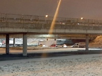 ДТП случилось в 6:44 в среду, 4 декабря. Большегруз не смог проехать под съездом с Октябрьского моста.