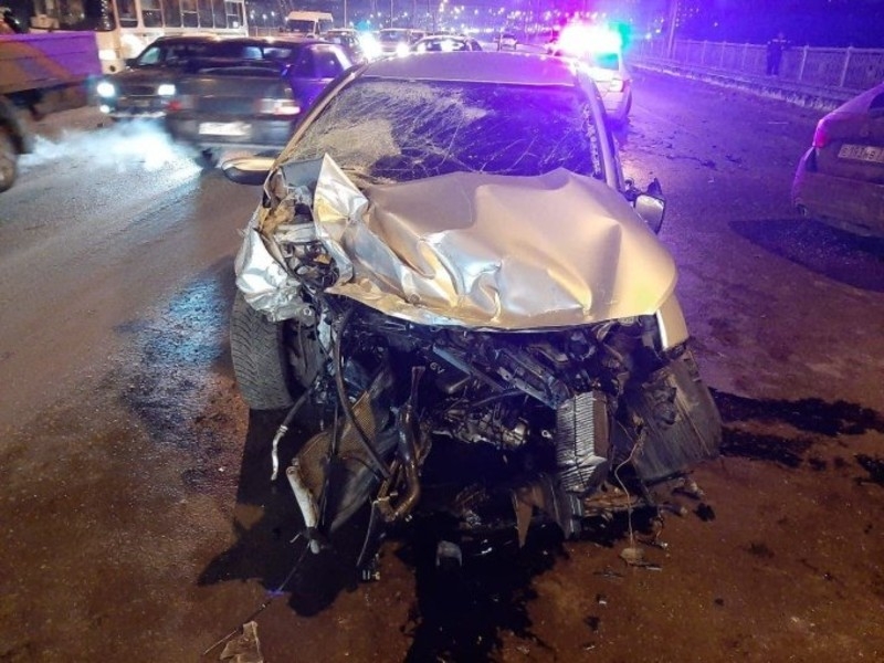 ДТП произошло на Октябрьском мосту накануне вечером.
